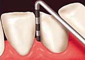 Die Sondierung des Raums zwischen Zahn und Zahnfleisch gibt Aufschluss über die Lokalität, Tiefe und den Entzündungsgrad der vorhandenen Zahnfleischtaschen. Zusätzlich wird mit einem speziellen Gerät – Periotest – der Lockerungsgrad elektronisch exakt festgestellt und für die Verlaufskontrolle gespeichert.