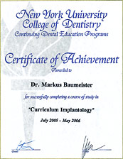 Herr Dr. Baumeister hat sich früh, Anfang der neunziger Jahre zur Implantologie bekannt und ist Mitglied zahlreicher nationaler und internationaler implantologischer Fachgesellschaften.